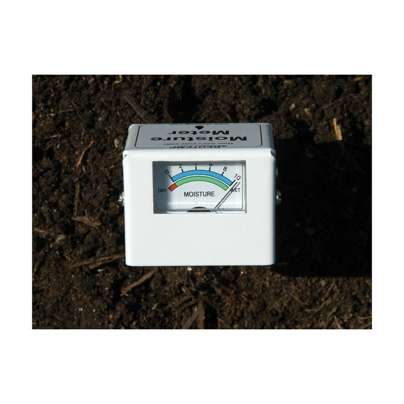 Heavy-duty 15″ long probe is used to monitor relative moisture levels to ensure proper compost decomposition and healthy garden plants. Adjustable meter allows you to calibrate for specific moisture needs. Powered by one AA battery (included). NOTE: The meter reads “wetness” by measuring electrical conductivity in the soil, which is sensitive to salt content. If the salt content of your compost varies between test locations, you may get inconsistent readings. The meter is sensitive only at the tip of the probe.